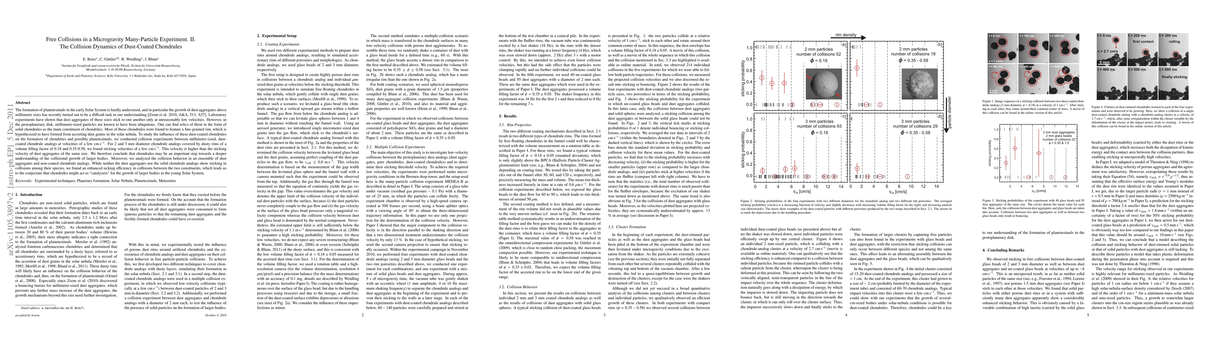 The formation of planetesimals in the early Solar System is hardly understood, and in particular the growth of dust aggregates above millimeter sizes has recently turned out to be a difficult task in our understanding [Zsom et al. 2010, A&A, 513, A57]. Laboratory experiments have shown that dust aggregates of these sizes stick to one another only at unreasonably low velocities. However, in the protoplanetary disk, millimeter-sized particles are known to have been ubiquitous. One can find relics of them in the form of solid chondrules as the main constituent of chondrites. Most of these chondrules were found to feature a fine-grained rim, which is hypothesized to have formed from accreting dust grains in the solar nebula. To study the influence of these dust-coated chondrules on the formation of chondrites and possibly planetesimals, we conducted collision experiments between millimeter-sized, dust-coated chondrule analogs at velocities of a few cm/s. For 2 and 3 mm diameter chondrule analogs covered by dusty rims of a volume filling factor of 0.18 and 0.35-0.58, we found sticking velocities of a few cm/s. This velocity is higher than the sticking velocity of dust aggregates of the same size. We therefore conclude that chondrules may be an important step towards a deeper understanding of the collisional growth of larger bodies. Moreover, we analyzed the collision behavior in an ensemble of dust aggregates and non-coated chondrule analogs. While neither the dust aggregates nor the solid chondrule analogs show sticking in collisions among their species, we found an enhanced sicking efficiency in collisions between the two constituents, which leads us to the conjecture that chondrules might act as "catalyzers" for the growth of larger bodies in the young Solar System.