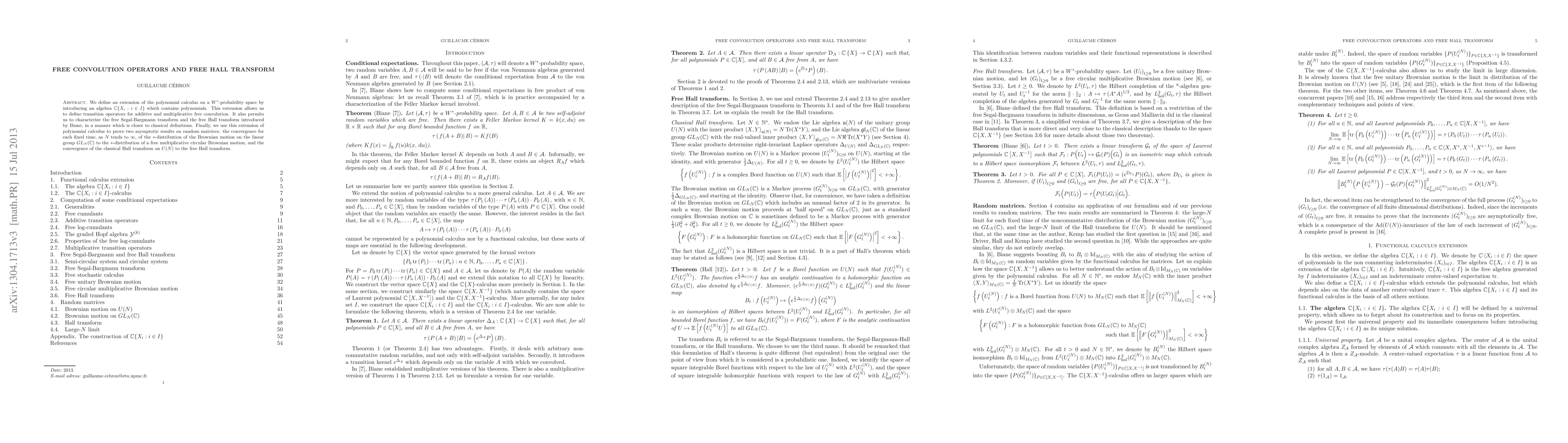 This paper extends the polynomial calculus on a W*-probability space to define transition operators for additive and multiplicative free convolution, and characterizes the free Segal-Bargmann and free Hall transforms. It also proves asymptotic results on random matrices, including the convergence of the *-distribution of Brownian motion on GL_N(C) to a free multiplicative circular Brownian motion and the convergence of the classical Hall transform on U(N) to the free Hall transform.