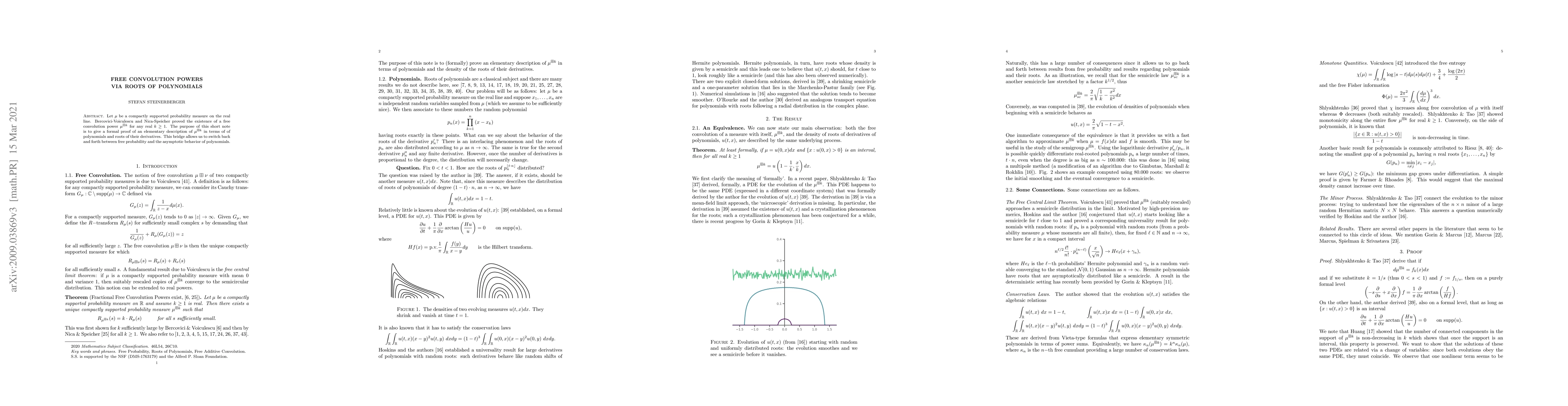 This paper provides an elementary method to describe the free convolution power $\mu^{\boxplus k}$ using polynomials and their derivatives' roots, bridging free probability theory and polynomial asymptotic behavior. This approach facilitates the analysis of the relationship between these two mathematical fields.