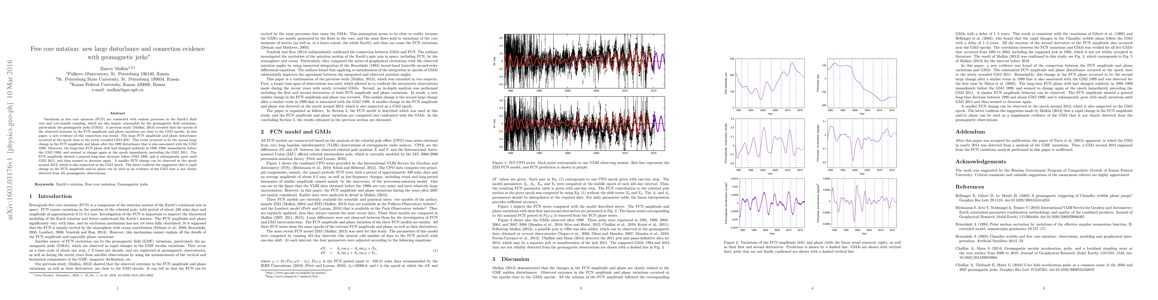 Researchers found a connection between large disturbances in the Earth's core nutation and geomagnetic jerks, with recent events coinciding with known geomagnetic jerks.
