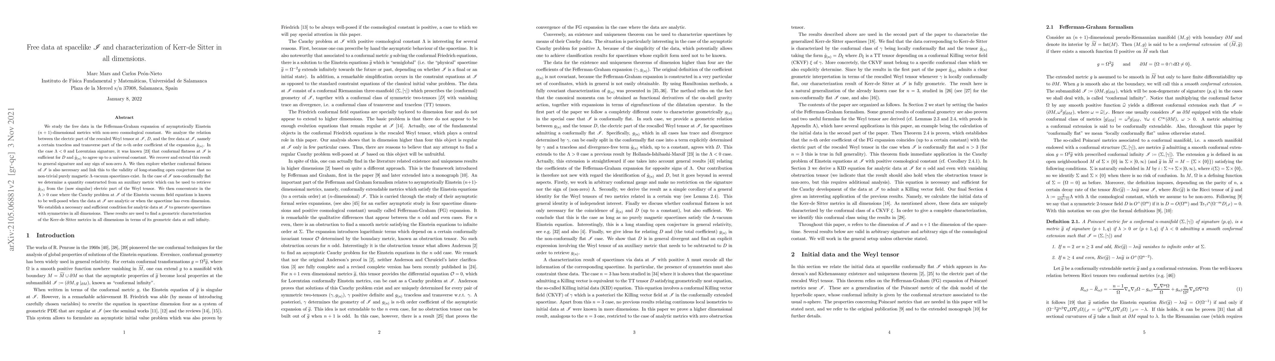 This paper investigates the free data in asymptotically Einstein metrics with a non-zero cosmological constant, proving that conformal flatness at $\mathscr{I}$ aligns the rescaled Weyl tensor with the free data. It also provides a method for extracting free data in non-conformally flat cases, establishing a Killing initial data equation and characterizing Kerr-de Sitter metrics in all dimensions based on their geometric data at null infinity.