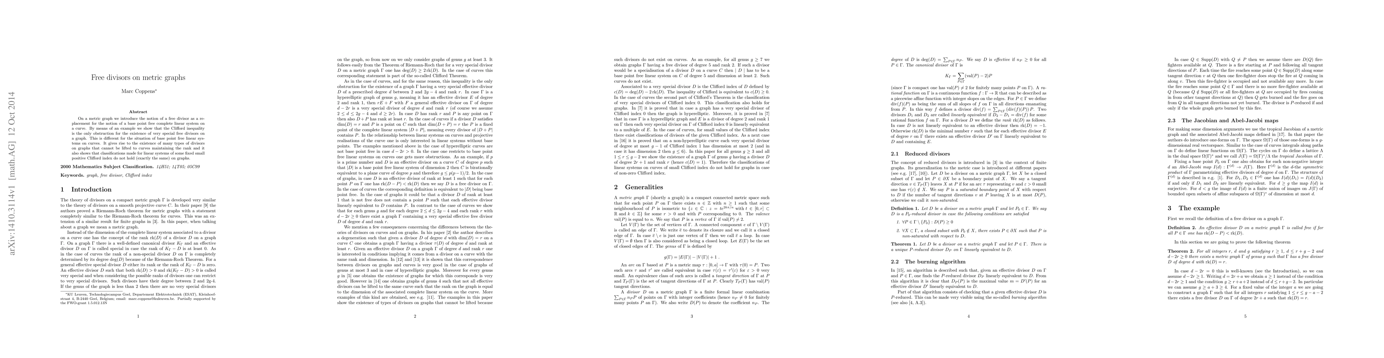 On a metric graph we introduce the notion of a free divisor as a replacement for the notion of a base point free complete linear system on a curve. By means of an example we show that the Clifford inequality is the only obstruction for the existence of very special free divisors on a graph. This is different from the situation of base point free linear systems on curves. It gives rise to the existence of many types of divisors on graphs that cannot be lifted to curves maintaining the rank and it also shows that classifications made for linear systems of some fixed small positive Clifford index do not hold (exactly the same) on graphs.