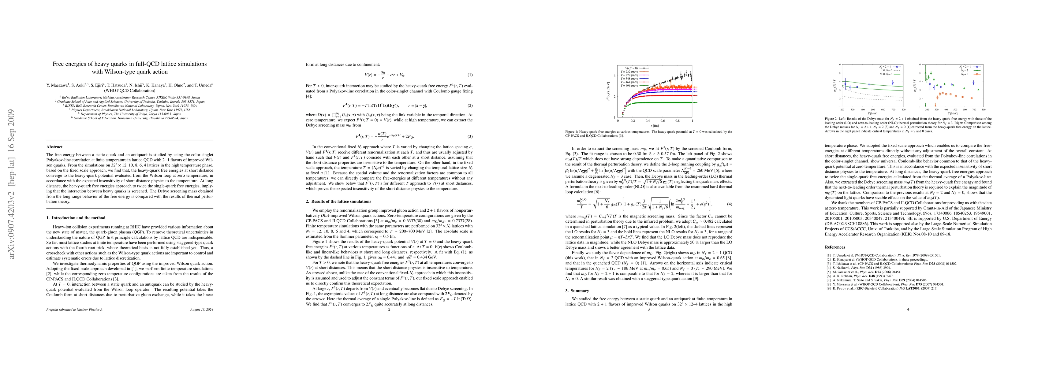 This paper investigates the free energy between static heavy quarks in full-QCD lattice simulations using an improved Wilson-type quark action. It finds that short-distance heavy-quark free energies align with zero-temperature potentials, while long-distance behaviors indicate screening of interactions between heavy quarks. The Debye screening mass derived from the study is compared with thermal perturbation theory results.