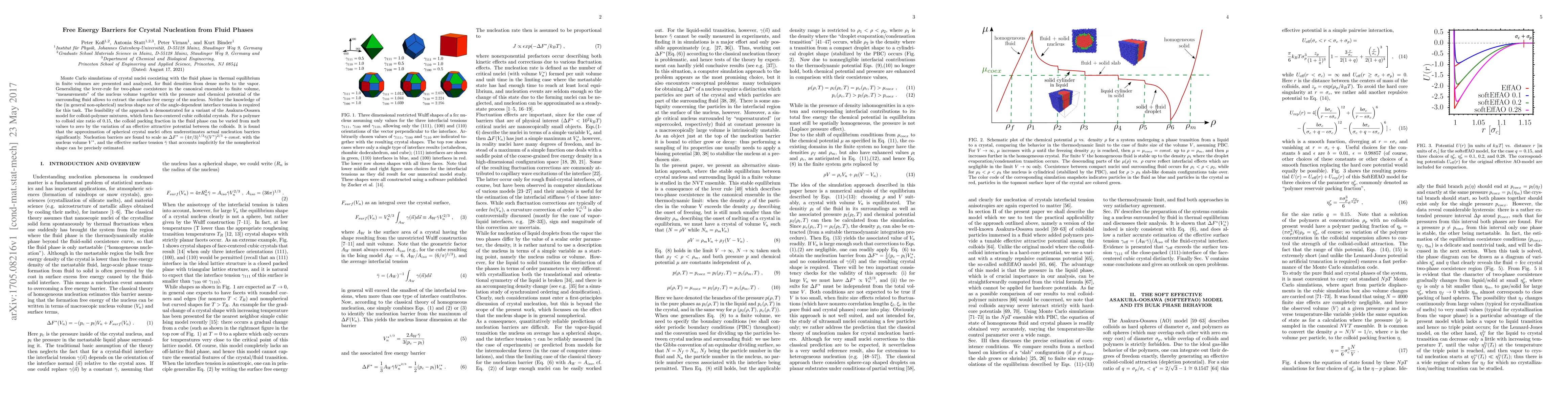 This paper uses Monte Carlo simulations to study crystal nucleation from fluid phases, employing a model for colloid-polymer mixtures. It reveals that spherical approximations often underestimate nucleation barriers, and finds that nucleation barriers scale with nucleus volume and effective surface tension.