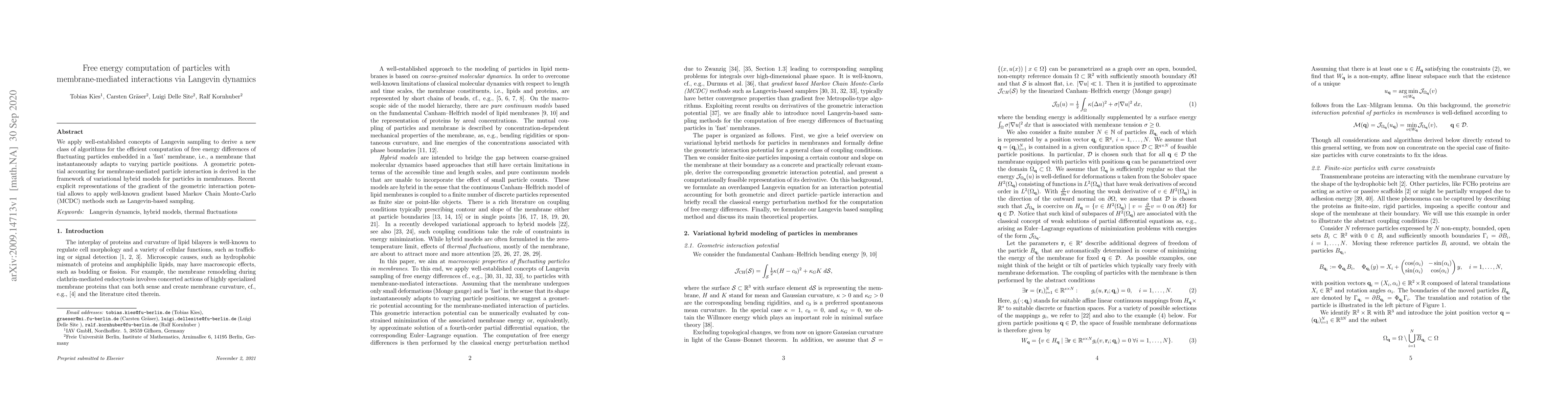 Researchers developed a new method to efficiently calculate free energy differences for particles in membranes, using Langevin dynamics and geometric potential accounting for membrane-mediated interactions.