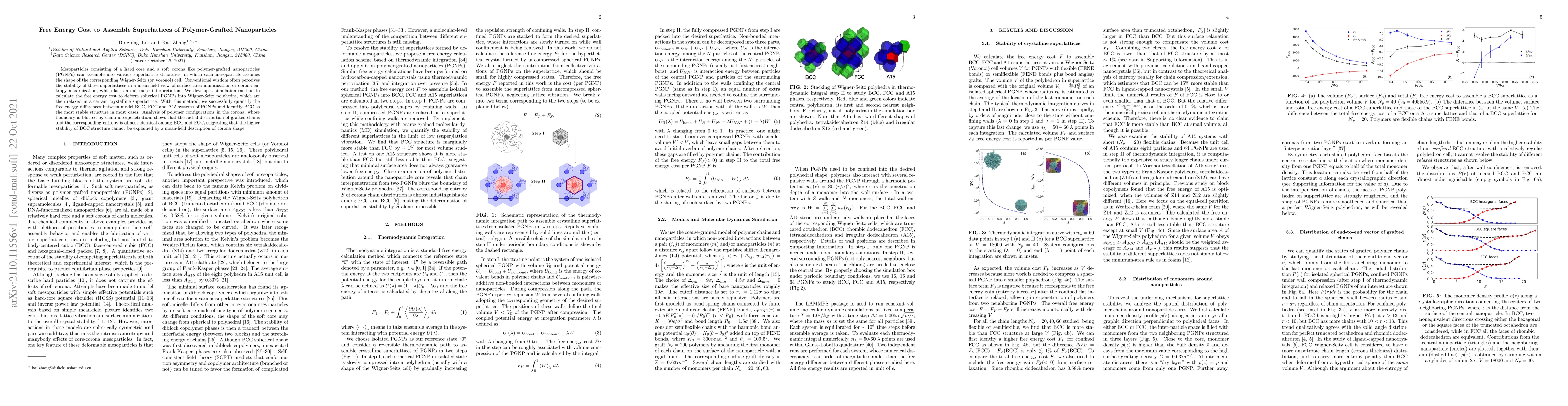This paper develops a simulation method to calculate the free energy cost for assembling polymer-grafted nanoparticles into superlattice structures, identifying BCC as the most stable configuration. It challenges conventional mean-field views by showing that BCC's stability is not due to differences in polymer corona entropy.