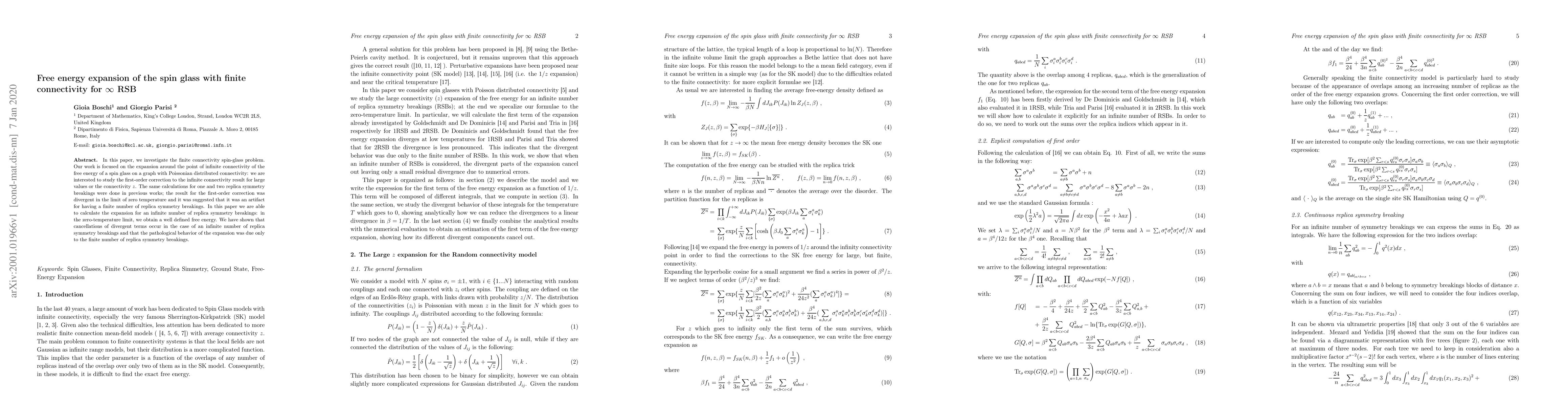 This paper explores the free energy expansion of a spin-glass model with finite connectivity, focusing on the first-order correction around infinite connectivity. It resolves previous divergent results by calculating the expansion for an infinite number of replica symmetry breakings, showing that the problematic behavior was due to a finite number of such breaks.