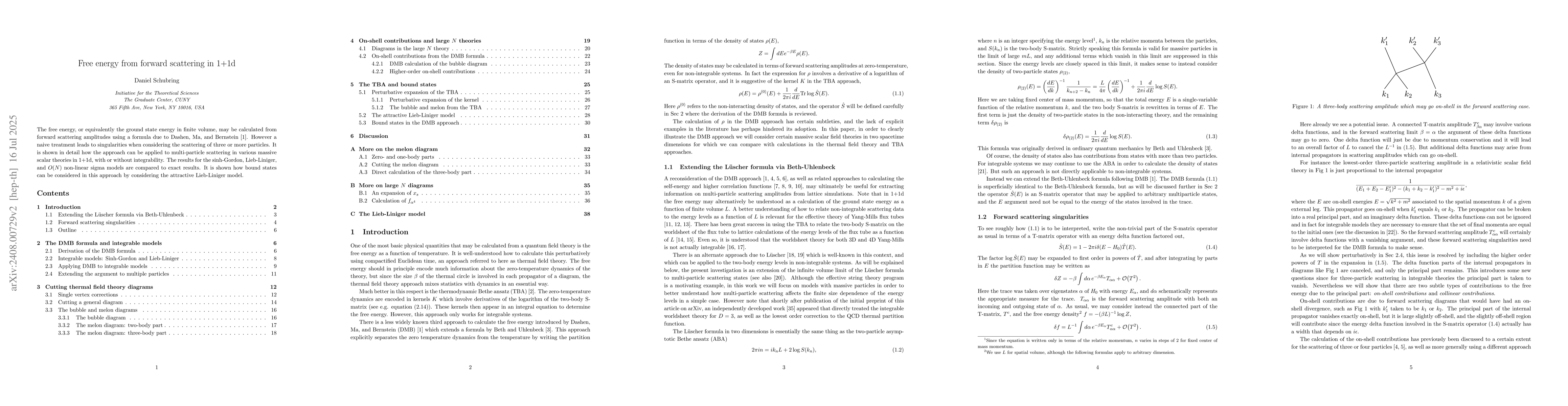The paper presents a detailed resolution of forward scattering divergences in the DMB formula, associating them with derivatives of energy delta functions, and demonstrates the approach's applicability to both integrable and non-integrable theories, including the calculation of free energy contributions from bubble and melon diagrams.