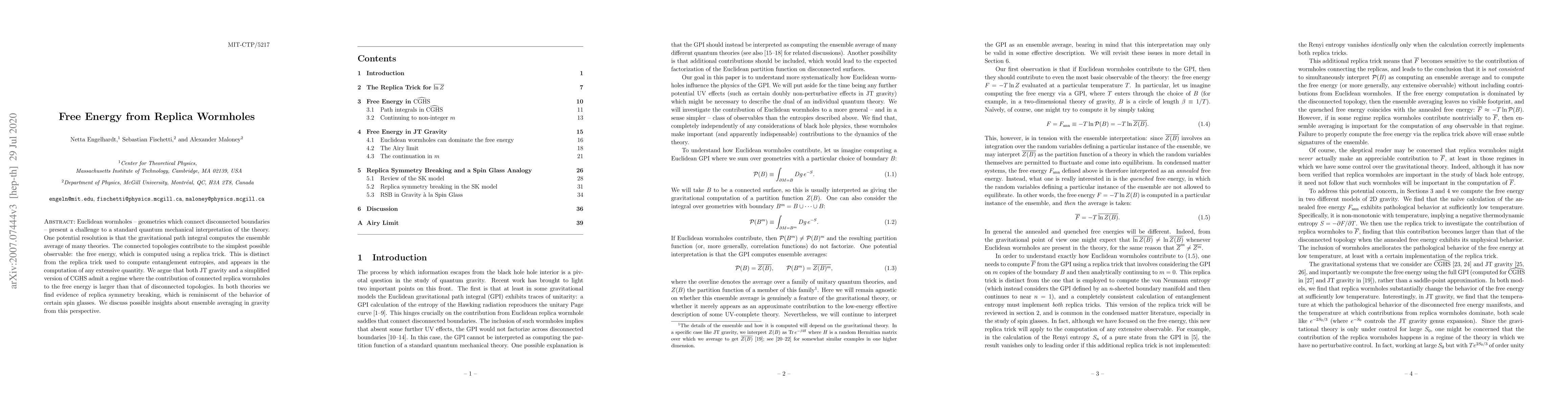 This paper explores how Euclidean wormholes contribute to the free energy in quantum gravity through the gravitational path integral, using the replica trick. It finds that in JT gravity and CGHS, connected wormholes dominate the free energy, indicating replica symmetry breaking akin to spin glasses.