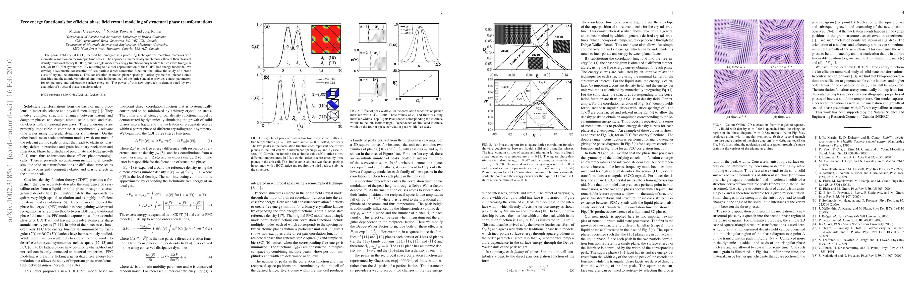 The paper presents a new free energy functional for the phase field crystal (PFC) method, improving its ability to model a wide range of crystalline structures beyond just triangular and BCC symmetries. This enhanced approach allows for efficient simulations of structural phase transformations by incorporating parameters for temperature, surface energies, and lattice characteristics.