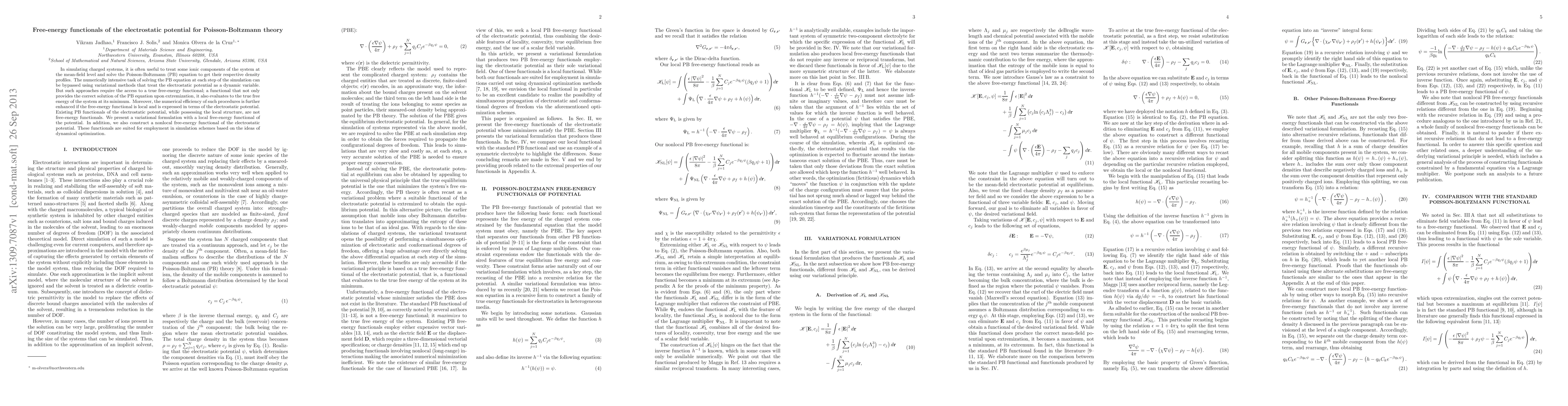 This paper presents variational formulations for a local and a nonlocal free-energy functional of the electrostatic potential in Poisson-Boltzmann theory, aiming to bypass the computationally intensive task of solving the PB equation in simulations by employing dynamical optimization. These functionals are designed to provide both the correct density profiles and the true free energy of the system.