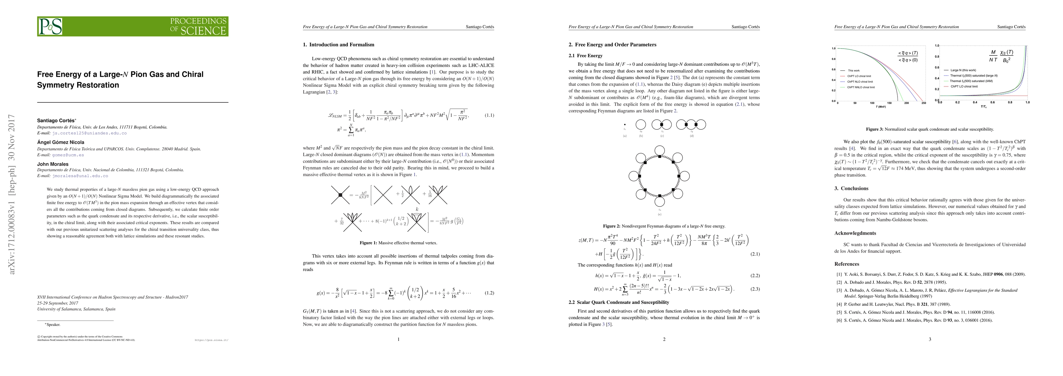 The work introduces a novel method for calculating the free energy of a large-N pion gas, providing insights into chiral symmetry restoration through critical behavior analysis, which aligns with lattice simulation results and resonant studies.