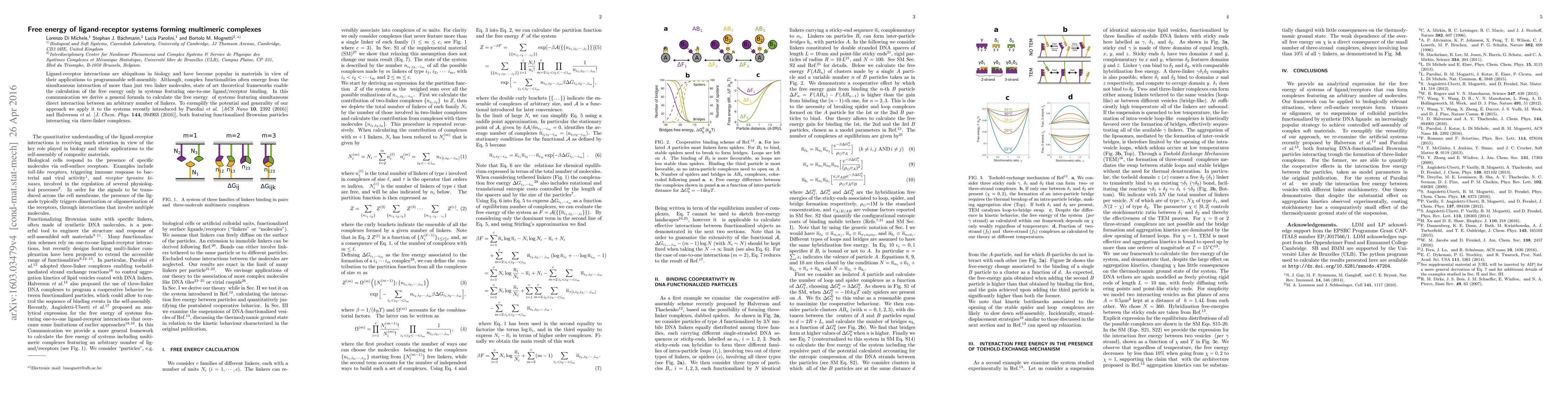 Ligand-receptor interactions are ubiquitous in biology and have become popular in materials in view of their applications to programmable self-assembly. Although, complex functionalities often emerge from the simultaneous interaction of more than just two linker molecules, state of art theoretical frameworks enable the calculation of the free energy only in systems featuring one-to-one ligand/receptor binding. In this communication we derive a general formula to calculate the free energy of a system featuring simultaneous direct interaction between an arbitrary number of linkers. To exemplify the potential and generality of our approach we apply it to the systems recently introduced by Parolini et al. [ACS Nano 10, 2392 (2016)] and Halverson et al. [J. Chem. Phys. 144, 094903 (2016)], both featuring functioanlized Brownian particles interacting via three-linker complexes.