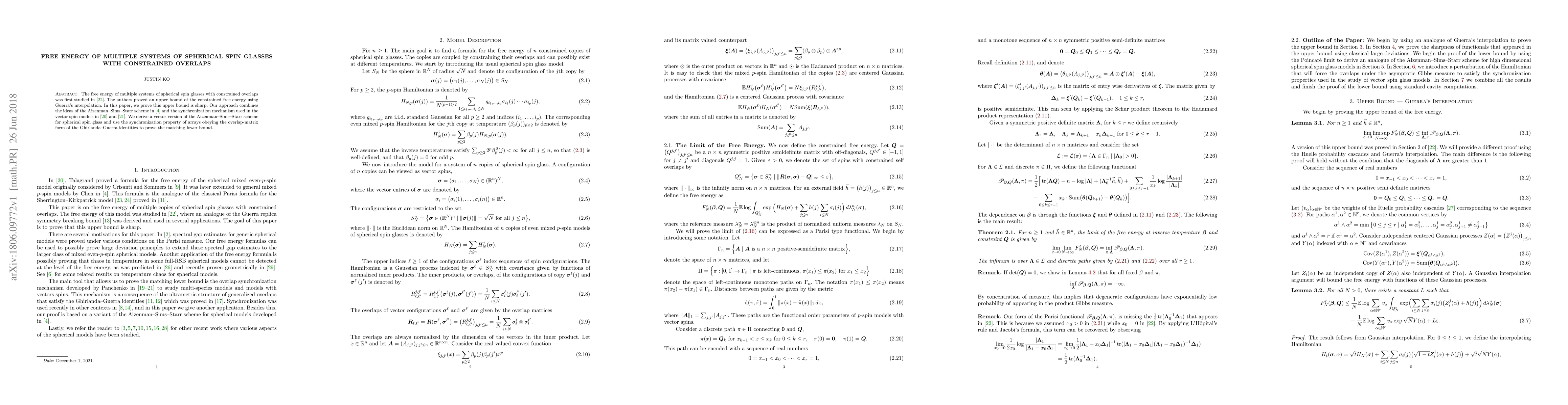 The free energy of multiple systems of spherical spin glasses with constrained overlaps was first studied in arXiv:math/0604082. The authors proved an upper bound of the constrained free energy using Guerra's interpolation. In this paper, we prove this upper bound is sharp. Our approach combines the ideas of the Aizenman-Sims-Starr scheme in arXiv:1204.5115 and the synchronization mechanism used in the vector spin models in arXiv:1512.04441 and arXiv:1512.00370 to prove the matching lower bound. We derive a vector version of the Aizenman-Sims-Starr scheme for spherical spin glass and use the synchronization property of arrays obeying the overlap-matrix form of the Ghirlanda-Guerra identities to prove the matching lower bound.