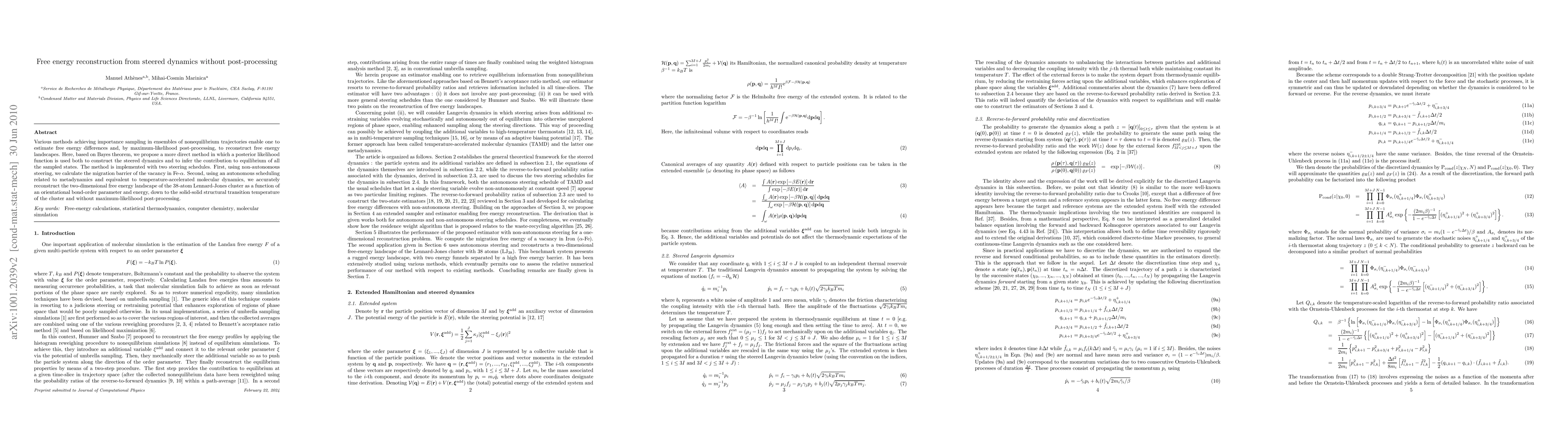 This paper proposes a novel method for reconstructing free energy landscapes directly from steered molecular dynamics simulations without requiring maximum-likelihood post-processing. The method uses Bayes theorem to construct the dynamics and infer equilibrium contributions, demonstrated through calculating migration barriers and reconstructing the free energy landscape of a Lennard-Jones cluster.