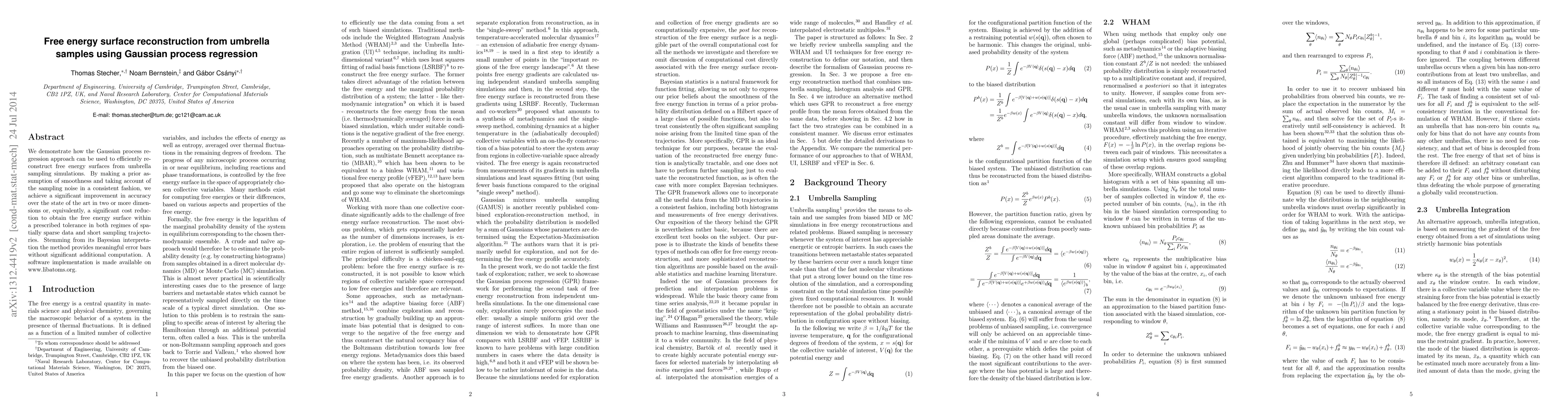 Researchers demonstrate a method using Gaussian process regression to efficiently reconstruct free energy surfaces from umbrella sampling simulations with improved accuracy and reduced computational cost.
