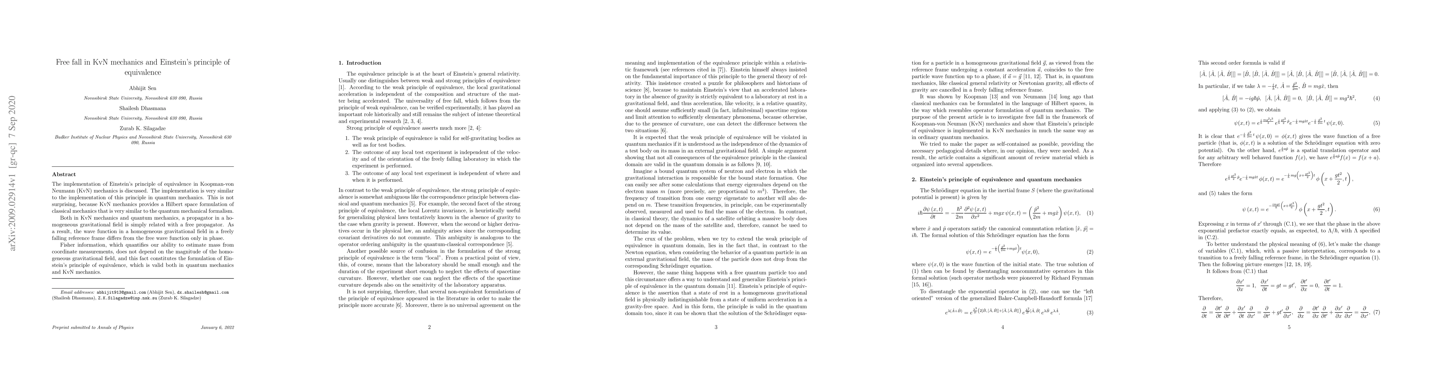 The implementation of Einstein's principle of equivalence in Koopman-von Neumann (KvN) mechanics is discussed. The implementation is very similar to the implementation of this principle in quantum mechanics. This is not surprising, because KvN mechanics provides a Hilbert space formulation of classical mechanics that is very similar to the quantum mechanical formalism. Both in KvN mechanics and quantum mechanics, a propagator in a homogeneous gravitational field is simply related with a free propagator. As a result, the wave function in a homogeneous gravitational field in a freely falling reference frame differs from the free wave function only in phase. Fisher information, which quantifies our ability to estimate mass from coordinate measurements, does not depend on the magnitude of the homogeneous gravitational field, and this fact constitutes the formulation of Einstein's principle of equivalence, which is valid both in quantum mechanics and KvN mechanics.