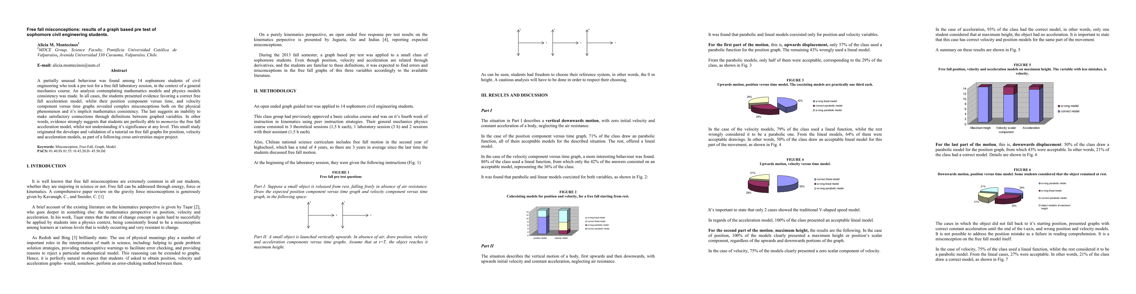 This study identified misconceptions among civil engineering students regarding free fall despite their correct understanding of the acceleration model. The analysis revealed that students struggled to connect graphed variables, indicating a gap between memorization and true comprehension of physics concepts.
