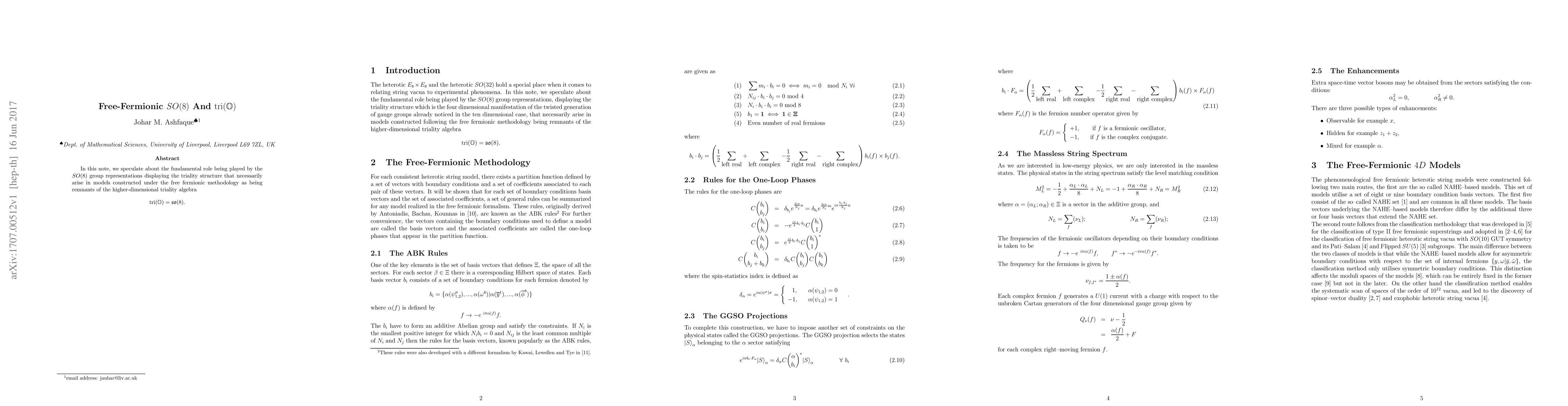 In this note, we speculate about the fundamental role being played by the $SO(8)$ group representations displaying the triality structure that necessarily arise in models constructed under the free fermionic methodology as being remnants of the higher-dimensional triality algebra tri$(\mathbb{O}) = \mathfrak{so}(8)$.