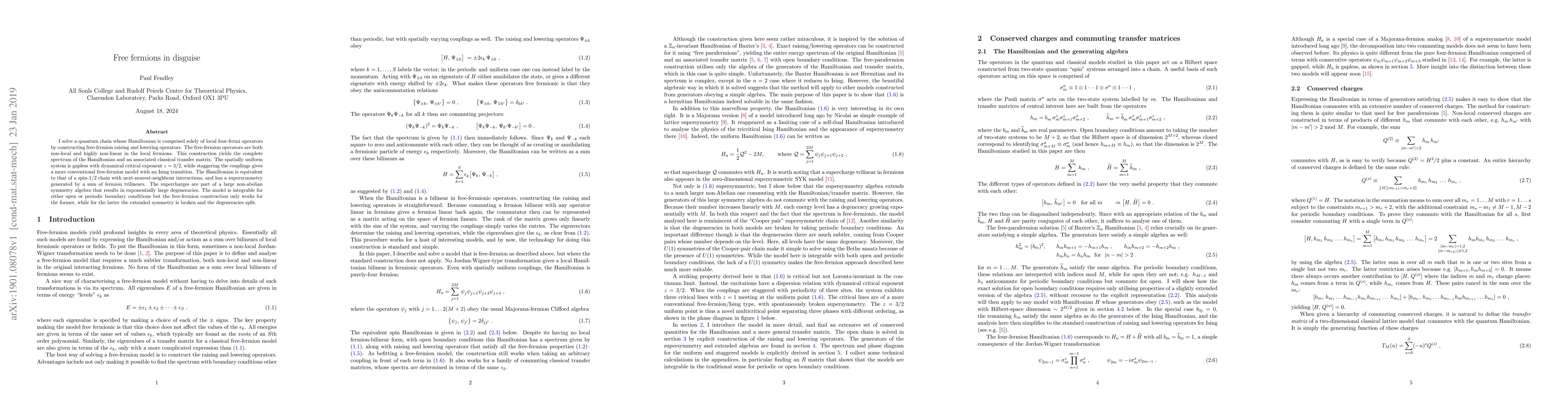 The paper presents a method to construct free-fermion operators for a quantum chain governed by a local four-fermi Hamiltonian, enabling the complete spectrum determination and transfer matrix formulation, despite the operators' non-local and highly non-linear nature.