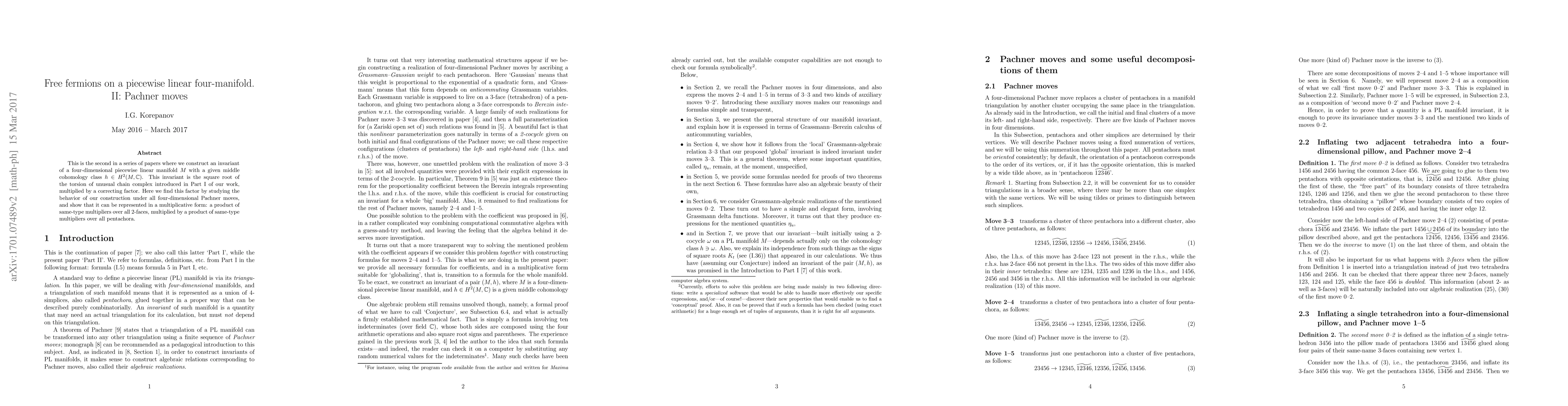 This is the second in a series of papers where we construct an invariant of a four-dimensional piecewise linear manifold $M$ with a given middle cohomology class $h\in H^2(M,\mathbb C)$. This invariant is the square root of the torsion of unusual chain complex introduced in Part I (arXiv:1605.06498) of our work, multiplied by a correcting factor. Here we find this factor by studying the behavior of our construction under all four-dimensional Pachner moves, and show that it can be represented in a multiplicative form: a product of same-type multipliers over all 2-faces, multiplied by a product of same-type multipliers over all pentachora.