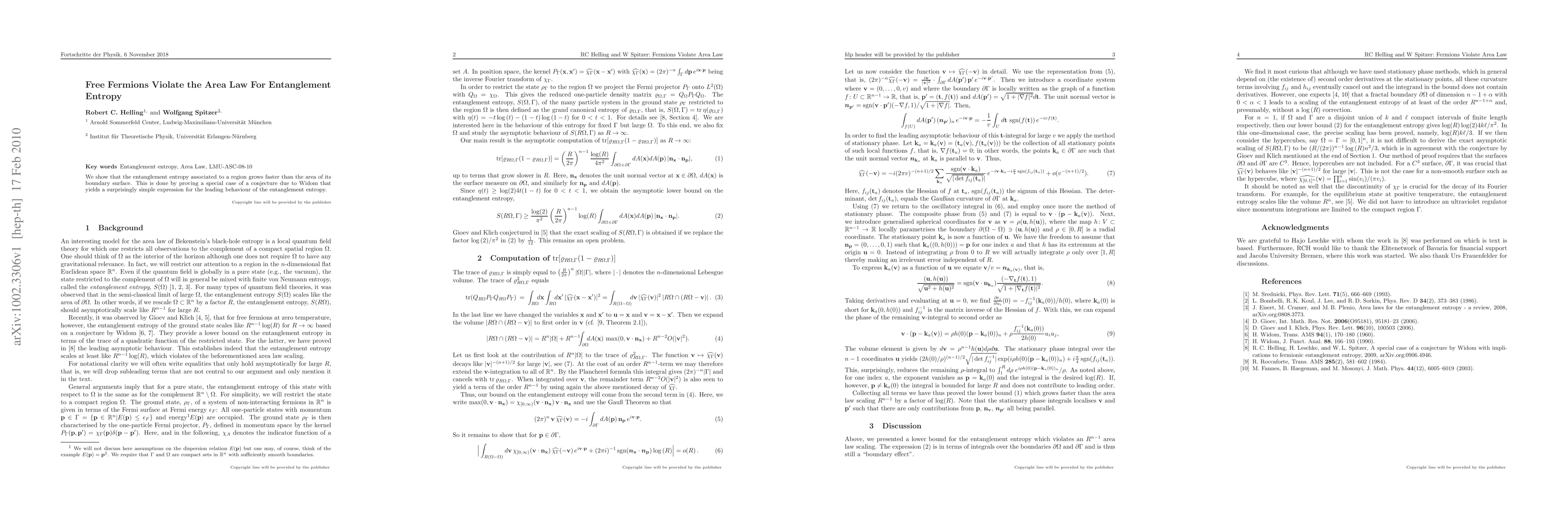 We show that the entanglement entropy associated to a region grows faster than the area of its boundary surface. This is done by proving a special case of a conjecture due to Widom that yields a surprisingly simple expression for the leading behaviour of the entanglement entropy.