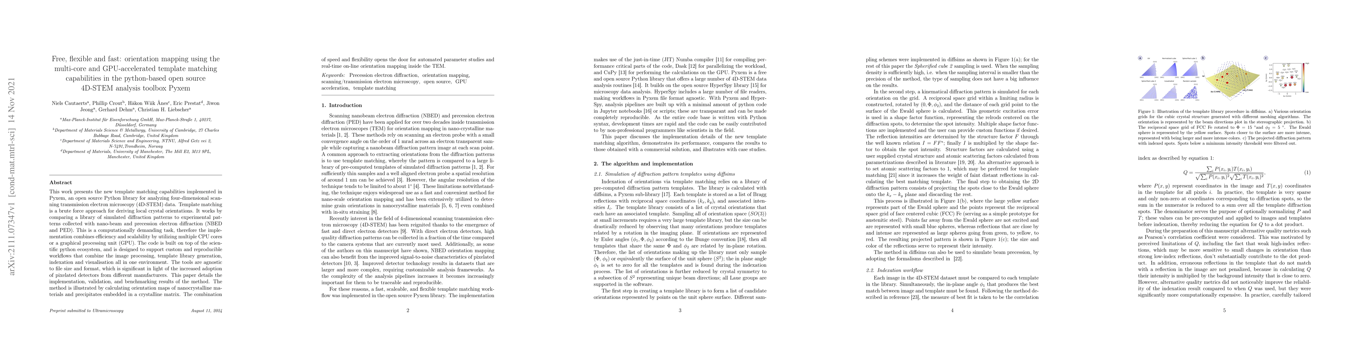 This paper introduces new template matching capabilities in Pyxem, an open-source Python library for 4D-STEM data analysis, enabling efficient and scalable orientation mapping using GPU and multi-core processing. The method is validated and demonstrated through orientation mapping of nanocrystalline materials, showcasing its speed and flexibility for real-time applications.