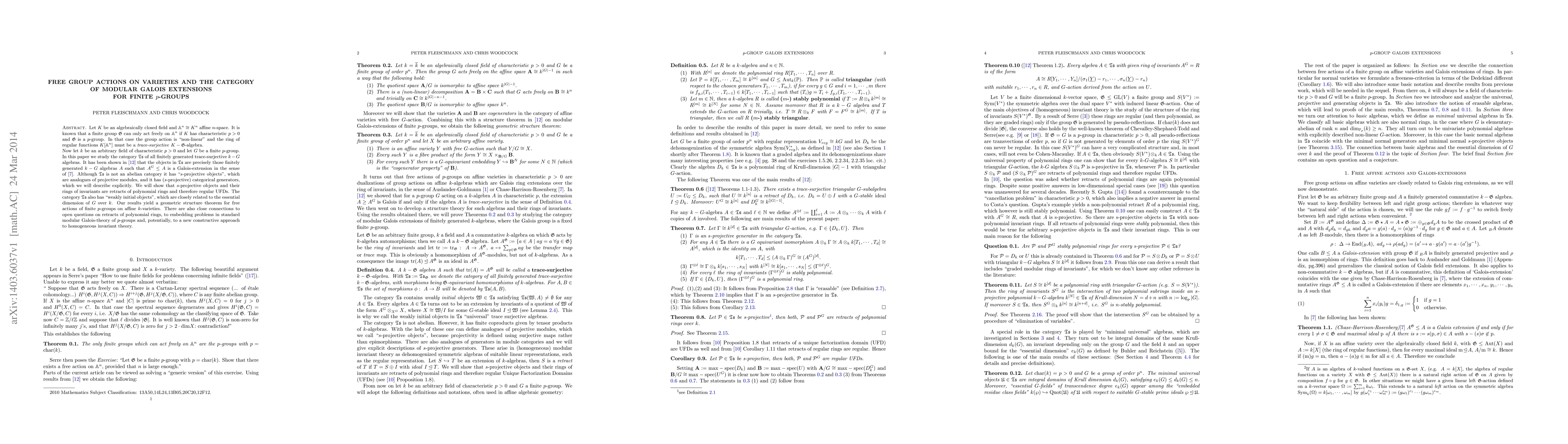 It is known that a finite group G can only act freely on affine n-space if K has positive characteristic p and G is a p-group. In that case the group action is "non-linear" and the ring of regular functions must be a trace-surjective G-algebra. Now let K be an arbitrary field of characteristic p>0 and let G be a finite p-group. In this paper we study the category Ts of all finitely generated trace-surjective K-G algebras. In a previous paper we have shown that the objects in Ts are precisely those finitely generated K-G algebras A such that the extension of A over the invariant ring A^G is a Galois-extension in the sense of Chase-Harrison-Rosenberg. Although Ts is not an abelian category it has "s-projective objects", which are analogues of projective modules, and it has (s-projective) categorical generators, which we will describe explicitly. We will show that s-projective objects and their rings of invariants are retracts of polynomial rings and therefore regular UFDs. The category Ts also has "weakly initial objects", which are closely related to the essential dimension of G over K. Our results yield a geometric structure theorem for free actions of finite p-groups on affine K-varieties. There are also close connections to open questions on retracts of polynomial rings, to embedding problems in standard modular Galois-theory of p-groups and, potentially, to a new constructive approach to homogeneous invariant theory.
