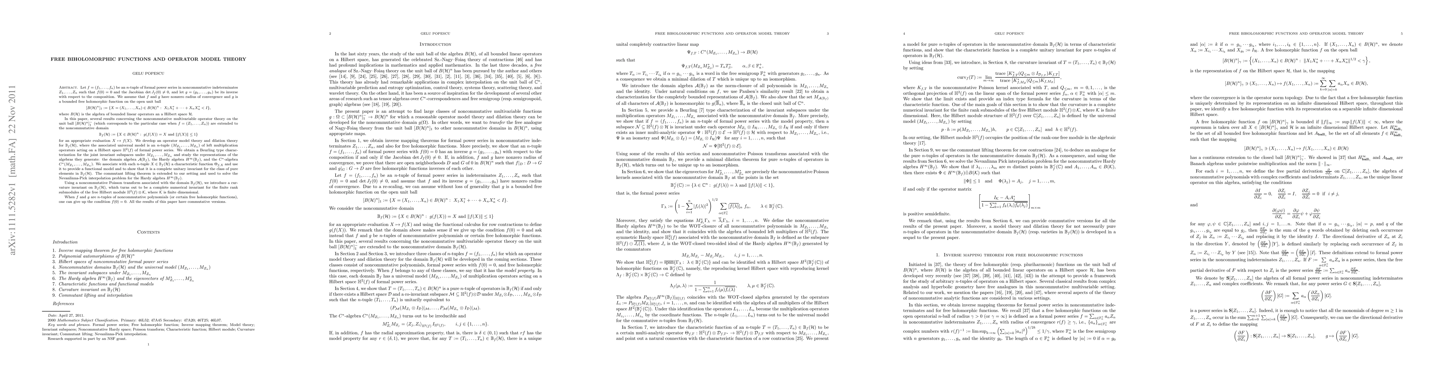 This paper is an attempt to find large classes of noncommutative multivariable functions $g:\Omega\subset [B(\cH)^n]_1^-\to B(\cH)^n$ for which a reasonable operator model theory and dilation theory can be developed for the noncommutative domain $g(\Omega)$. In other words, we want to transfer the free analogue of Nagy-Foias theory from the unit ball $[B(\cH)^n]_1$ to other noncommutative domains, using appropriate maps.
