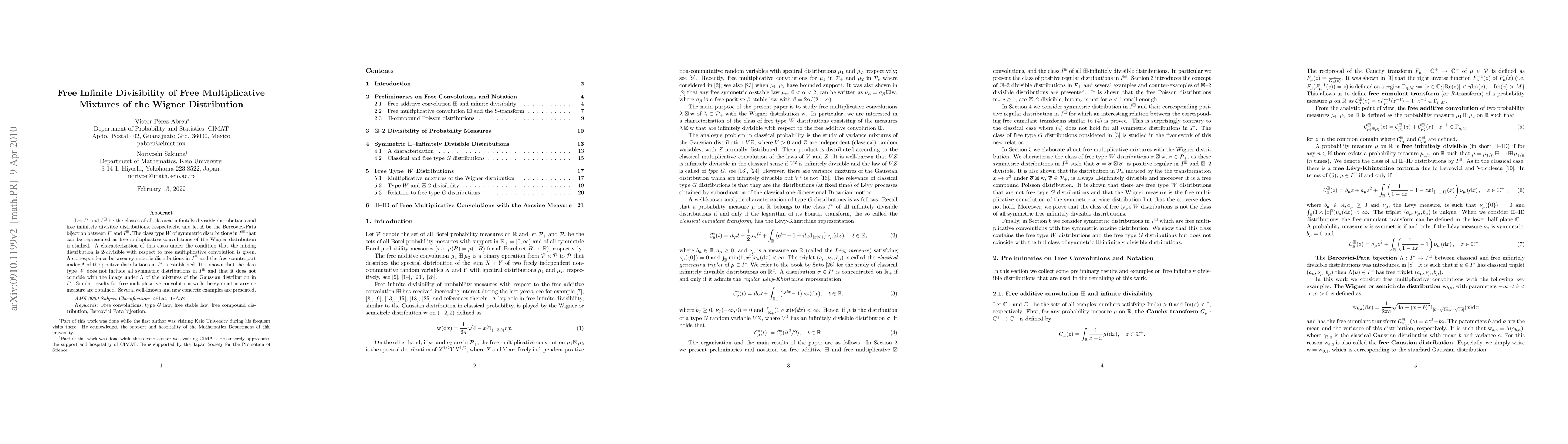 This paper establishes necessary and sufficient conditions for the free additive infinite divisibility of certain free multiplicative convolutions involving the Wigner, arcsine, and free Poisson distributions, with illustrative examples provided.
