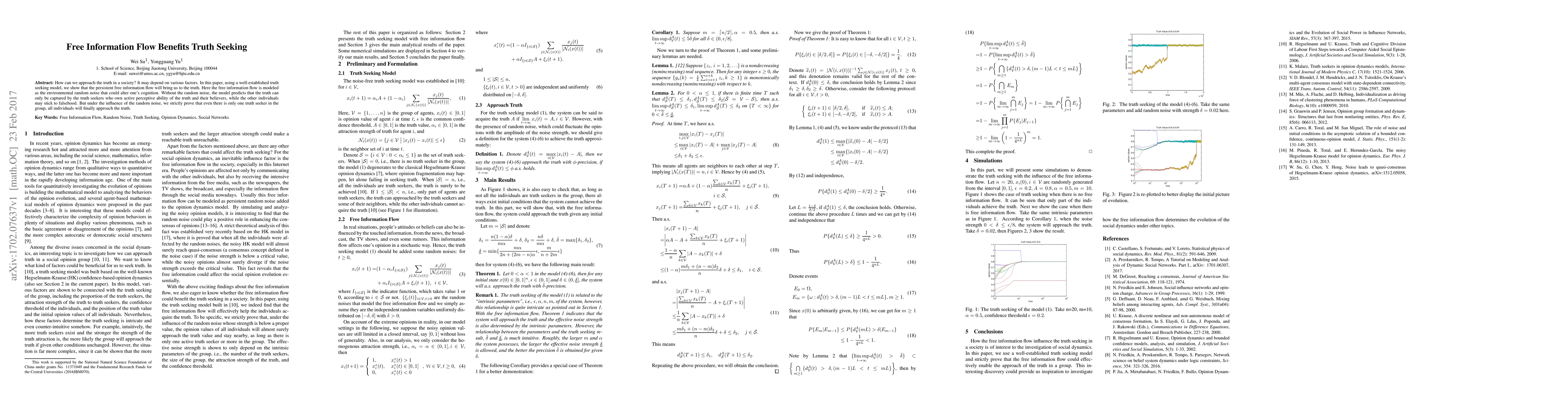 The paper presents a rigorous mathematical proof demonstrating that free information flow, modeled as random noise, ensures convergence to the truth in a truth-seeking model, even under diverse initial conditions.