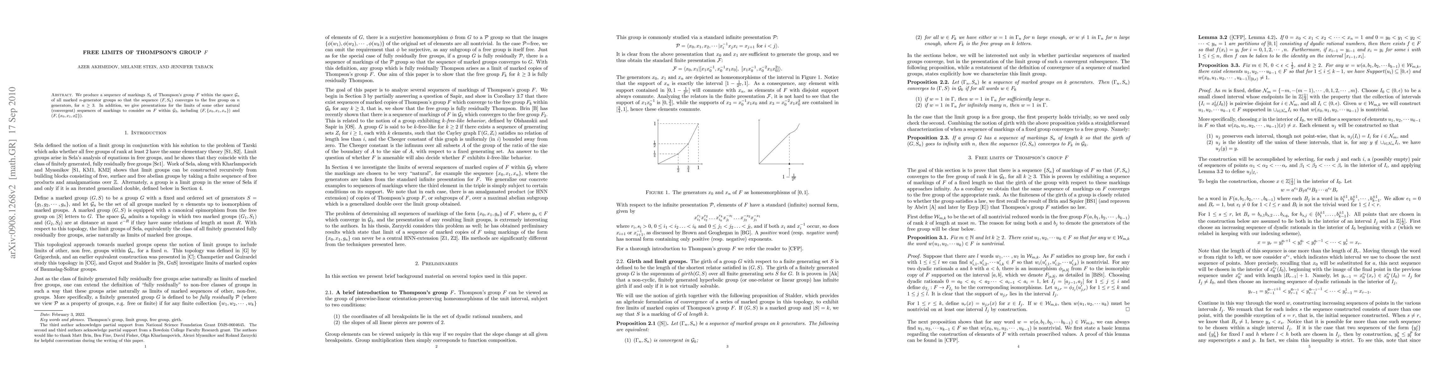This paper constructs a sequence of markings of Thompson's group $F$ that converges to the free group on $n$ generators for $n \geq 3$. It also presents limits for other natural sequences of markings within the space ${\mathcal G}_3$.