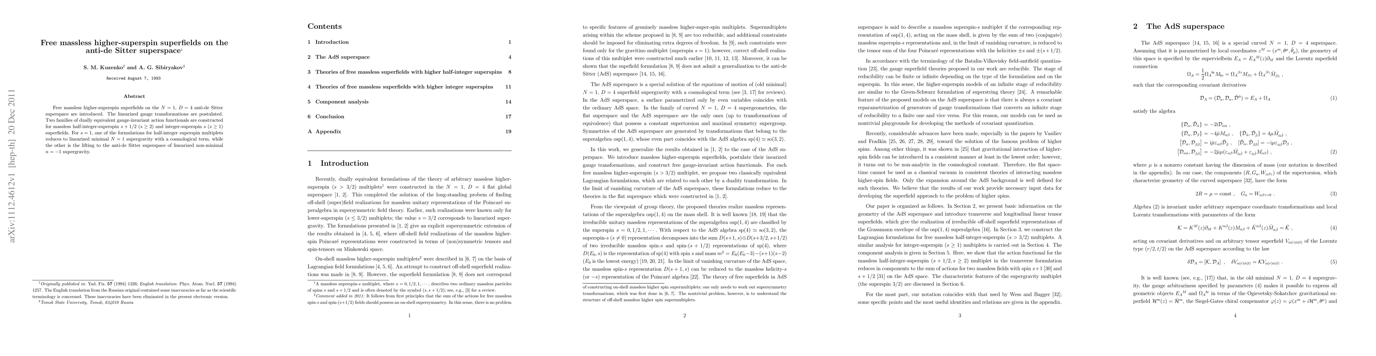 Researchers introduced free massless higher-superspin superfields on anti-de Sitter superspace, constructing two gauge-invariant action functionals for half-integer and integer superspins, with implications for linearized minimal and non-minimal supergravities.