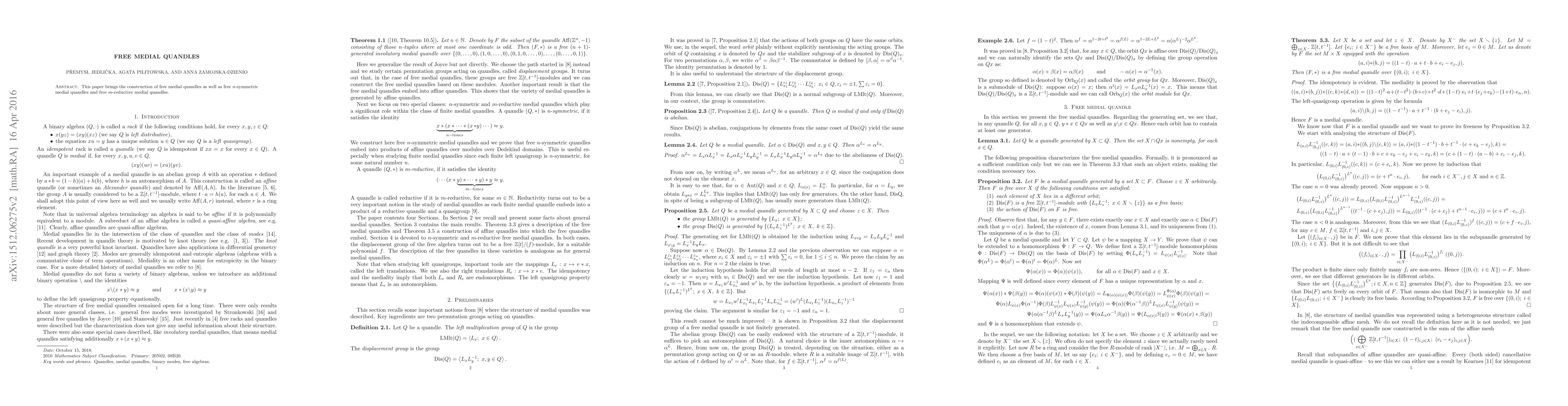 Summary: This paper constructs free medial quandles and introduces free $n$-symmetric and free $m$-reductive medial quandles, expanding the understanding of these algebraic structures.