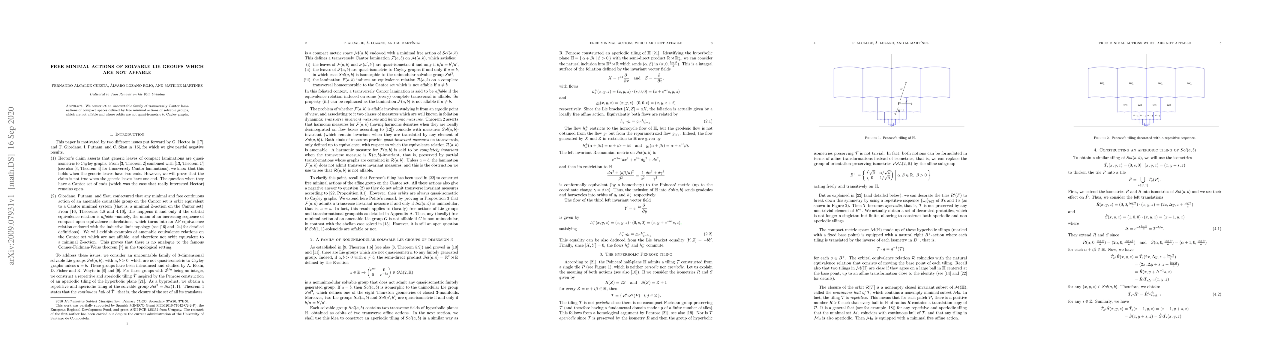 We construct an uncountable family of transversely Cantor laminations of compact spaces defined by free minimal actions of solvable groups, which are not affable and whose orbits are not quasi-isometric to Cayley graphs.