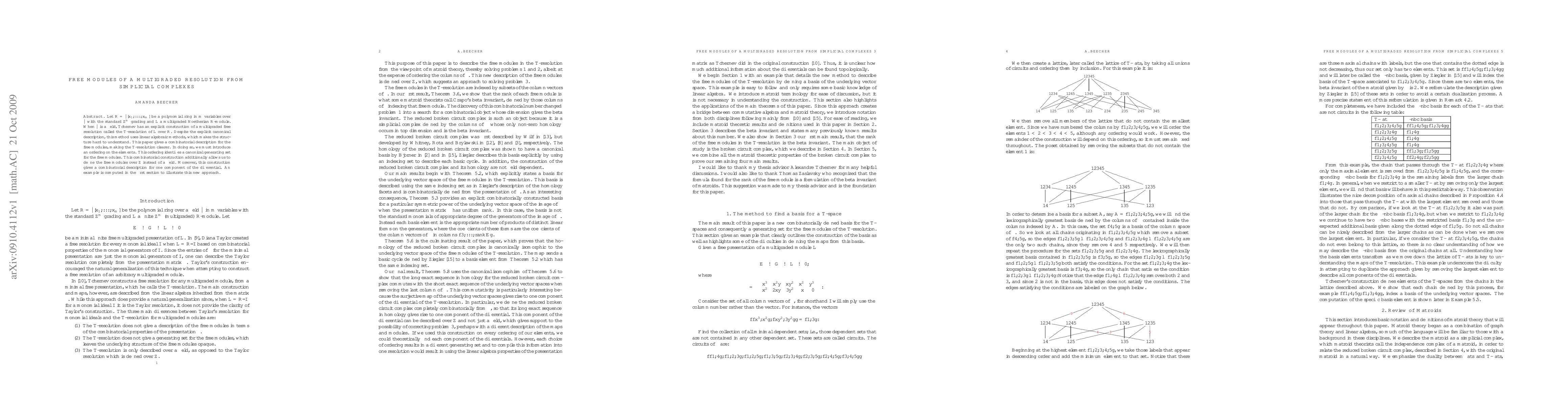 Let $R=\Bbbk [x_1,..., x_m]$ be a polynomial ring in $m$ variables over $\Bbbk$ with the standard $\mathbb{Z}^m$ grading and $L$ a multigraded Noetherian $R$-module. When $\Bbbk$ is a field, Tchernev has an explicit construction of a multigraded free resolution called the T-resolution of $L$ over $R$. Despite the explicit canonical description, this method uses linear algebraic methods, which makes the structure hard to understand. This paper gives a combinatorial description for the free modules, making the T-resolution clearer. In doing so, we must introduce an ordering on the elements. This ordering identifies a canonical generating set for the free modules. This combinatorial construction additionally allows us to define the free modules over $\mathbb{Z}$ instead of a field. Moreover, this construction gives a combinatorial description for one component of the differential. An example is computed in the first section to illustrate this new approach.