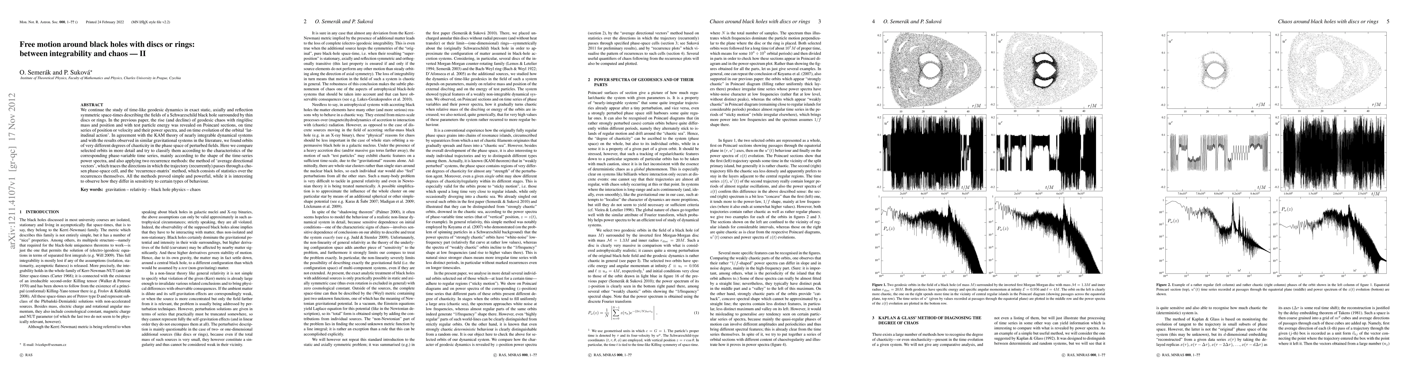 This paper continues the investigation of geodesic dynamics around Schwarzschild black holes with surrounding thin discs or rings, focusing on classifying orbits based on their chaoticity. It employs advanced recurrence methods to analyze the phase-space behavior, revealing diverse chaotic characteristics and comparing their sensitivity to different types of dynamical behavior.