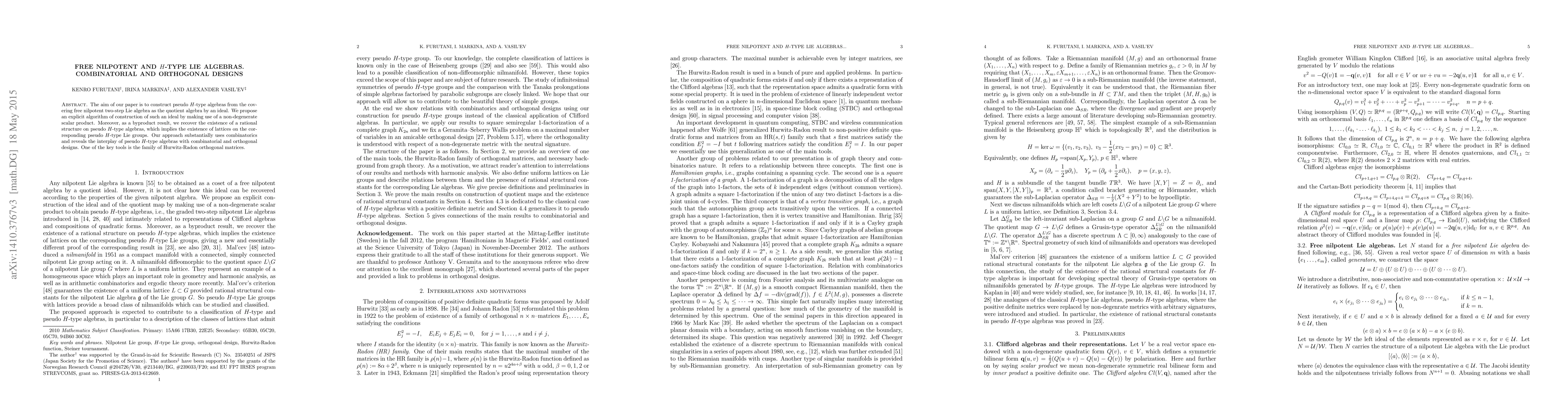 This paper constructs pseudo $H$-type algebras from a covering free nilpotent two-step Lie algebra by introducing an ideal via a non-degenerate scalar product. It utilizes combinatorial methods and orthogonal designs, including Hurwitz-Radon matrices, to demonstrate the existence of a rational structure and lattices on pseudo $H$-type Lie groups.