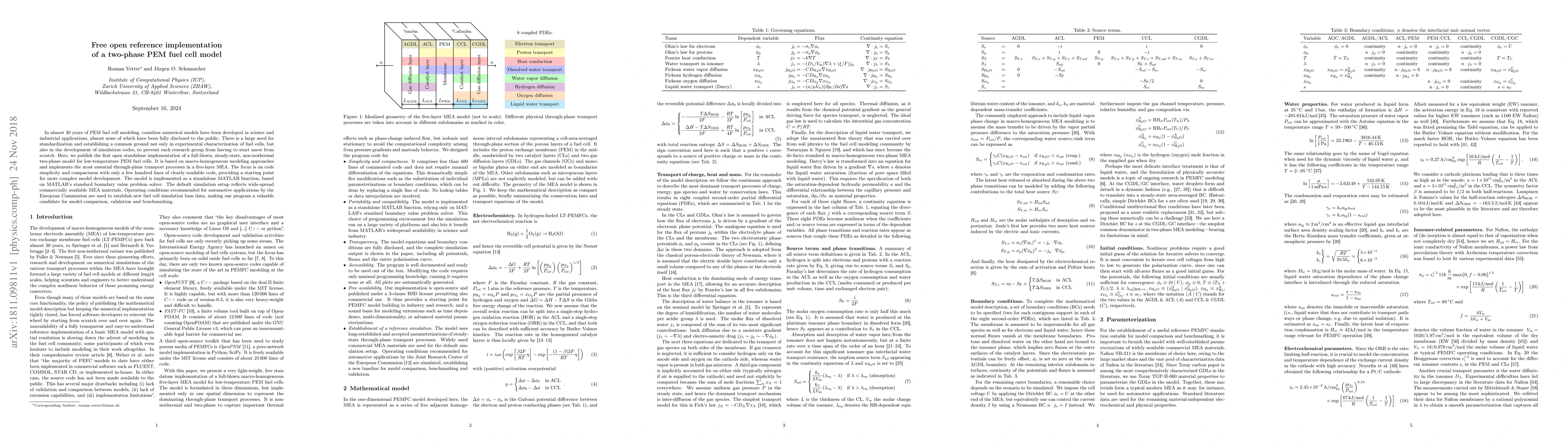 This paper presents the first open-source implementation of a comprehensive, steady-state, non-isothermal two-phase PEM fuel cell model, aiming to standardize simulation practices and provide a simple, readable MATLAB code for further model development. The model focuses on essential transport processes in a five-layer MEA and establishes new simulation base data for automotive applications.