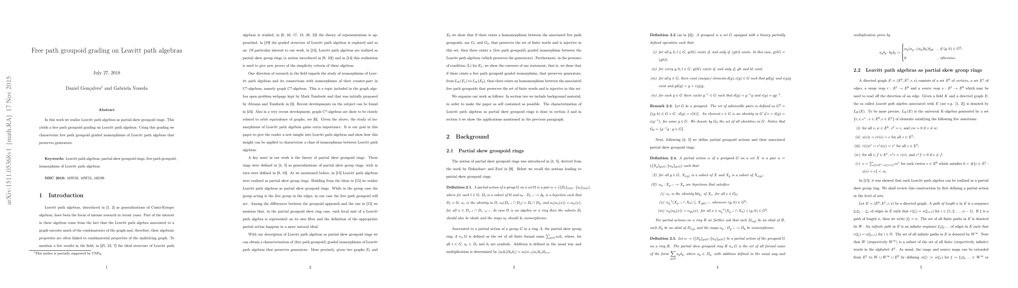 Summary: This paper realizes Leavitt path algebras as partial skew groupoid rings, introducing a free path groupoid grading. The study characterizes graded isomorphisms that preserve generators within this framework.