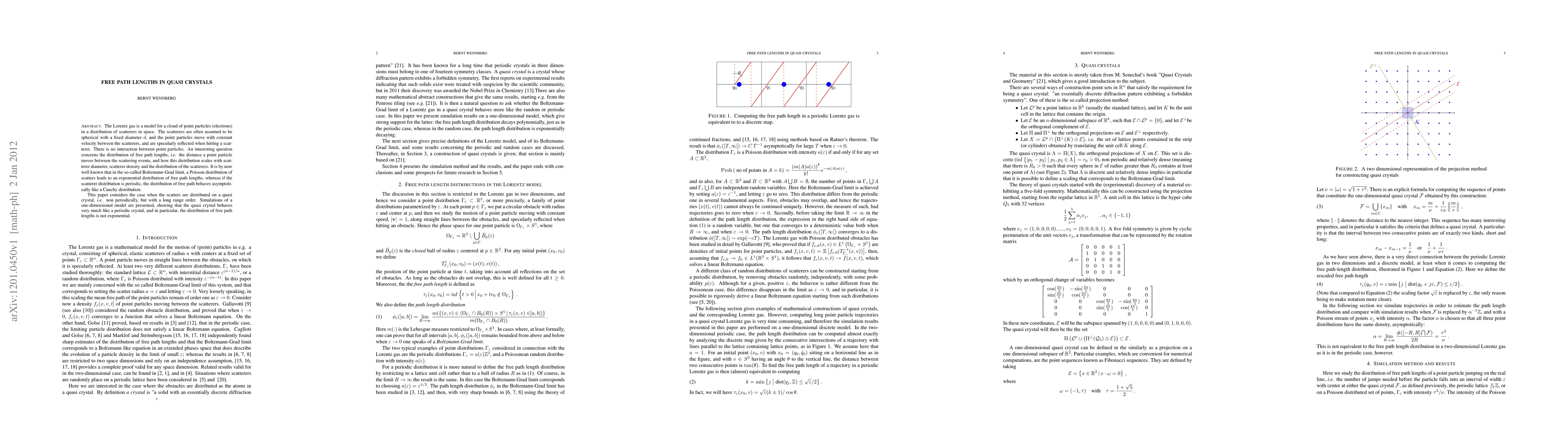 Research on quasi crystals reveals that free path lengths of particles in a cloud do not follow an exponential distribution as expected, but instead behave like those in periodic crystals, with the distribution resembling a Cauchy distribution.