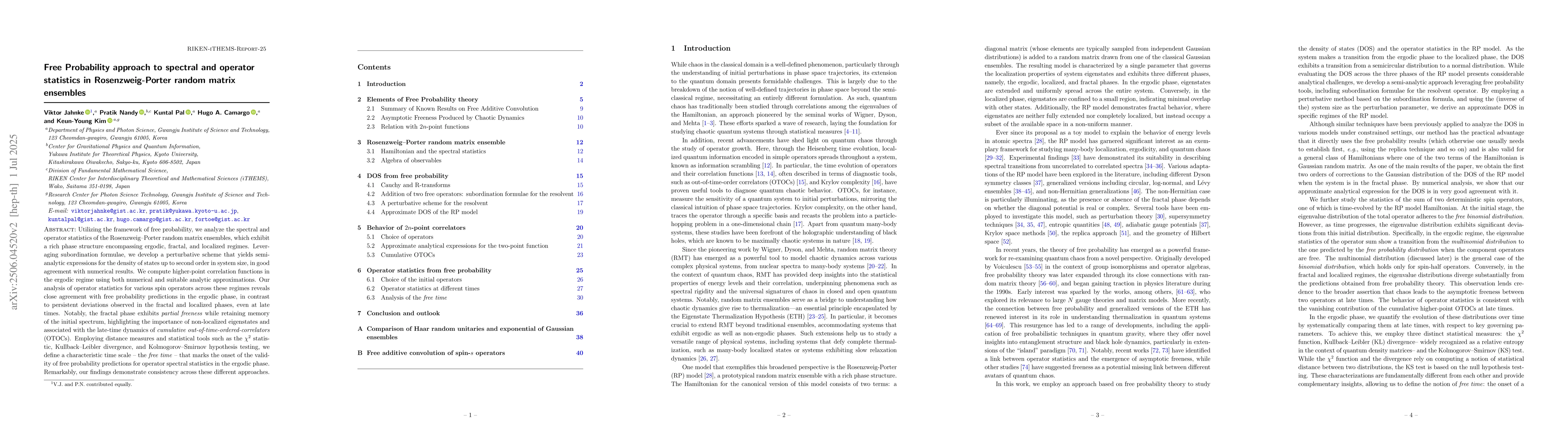 This work distinguishes itself by applying free probability to Rosenzweig-Porter ensembles, uncovering distinct spectral and operator statistical behaviors across ergodic, fractal, and localized phases, and introducing a characteristic time scale for free probability predictions.