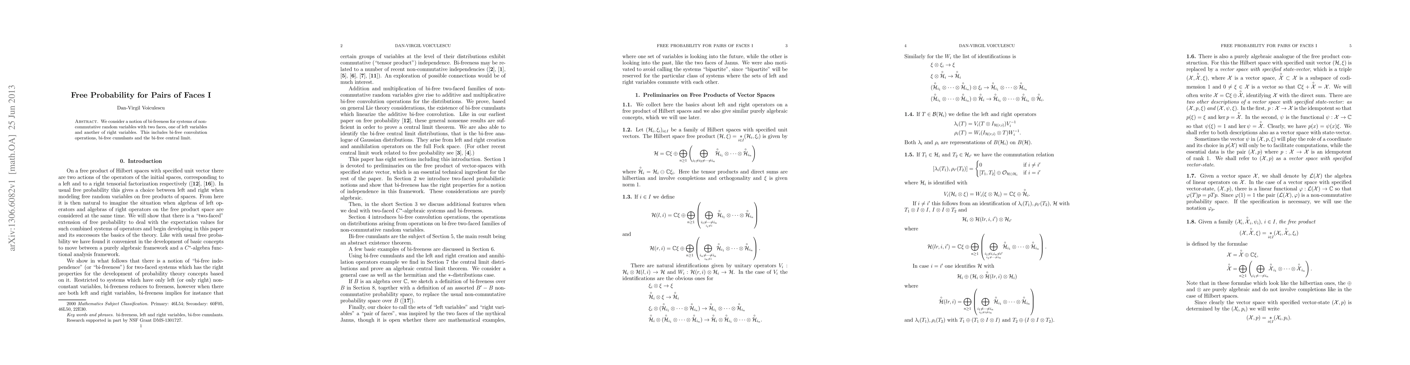 This paper introduces bi-free probability for systems with two distinct sets of non-commutative random variables, exploring bi-free convolution operations, bi-free cumulants, and the bi-free central limit theorem. The concept extends classical free probability to handle pairs of faces.