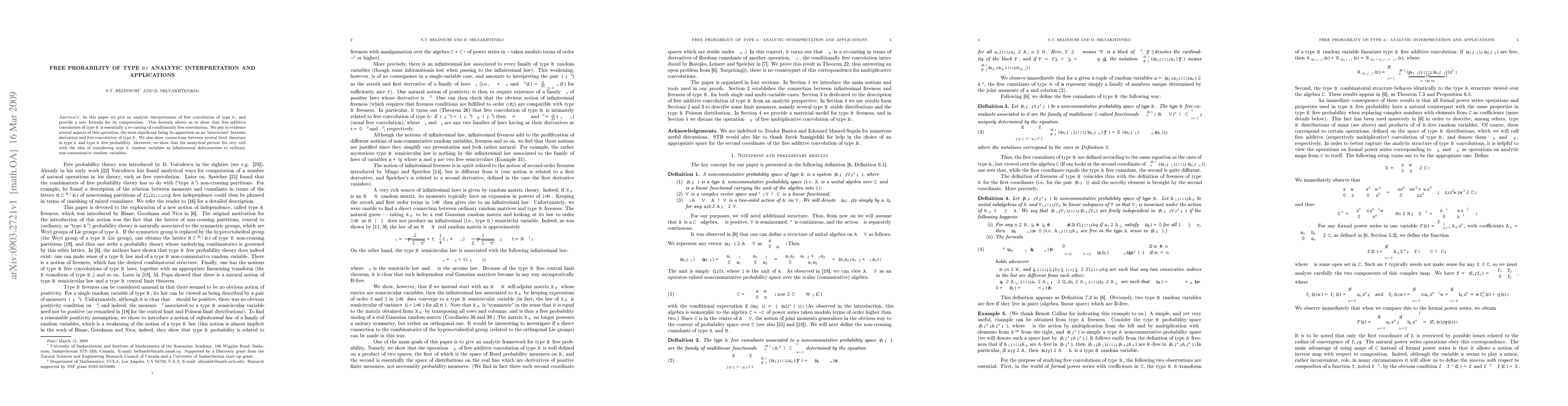 In this paper we give an analytic interpretation of free convolution of type B, introduced by Biane, Goodman and Nica, and provide a new formula for its computation. This formula allows us to show that free additive convolution of type B is essentially a re-casting of conditionally free convolution. We put in evidence several aspects of this operation, the most significant being its apparition as an 'intertwiner' between derivation and free convolution of type A. We also show connections between several limit theorems in type A and type B free probability. Moreover, we show that the analytical picture fits very well with the idea of considering type B random variables as infinitesimal deformations to ordinary non-commutative random variables.