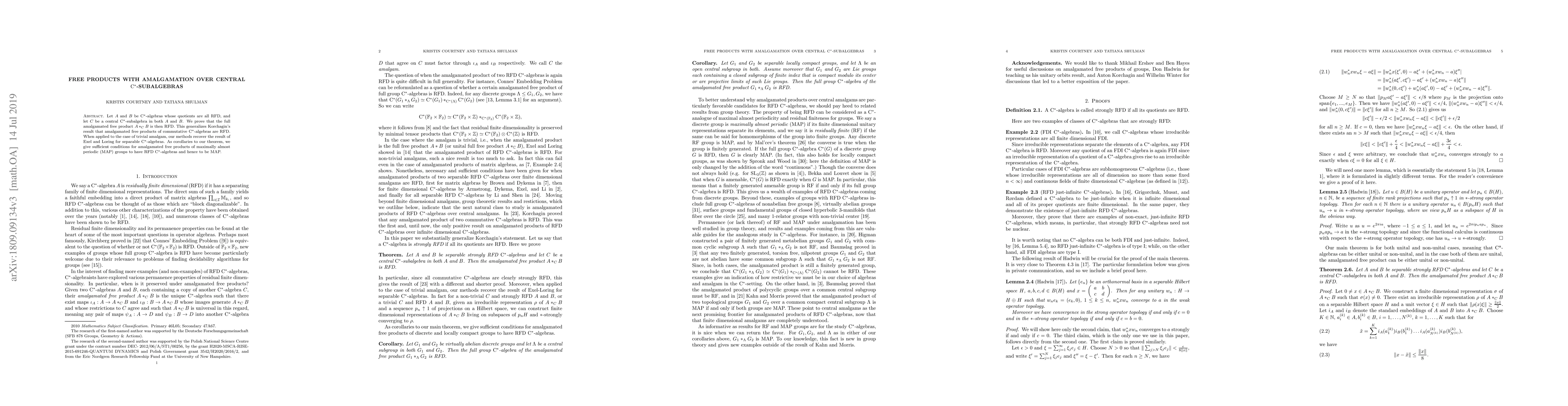 This paper proves that the full amalgamated free product of two C*-algebras over a common central C*-subalgebra is RFD, extending Korchagin's result for commutative cases and recovering Exel-Loring's result for separable C*-algebras. It also provides conditions for amalgamated free products of maximally almost periodic groups to yield RFD C*-algebras.