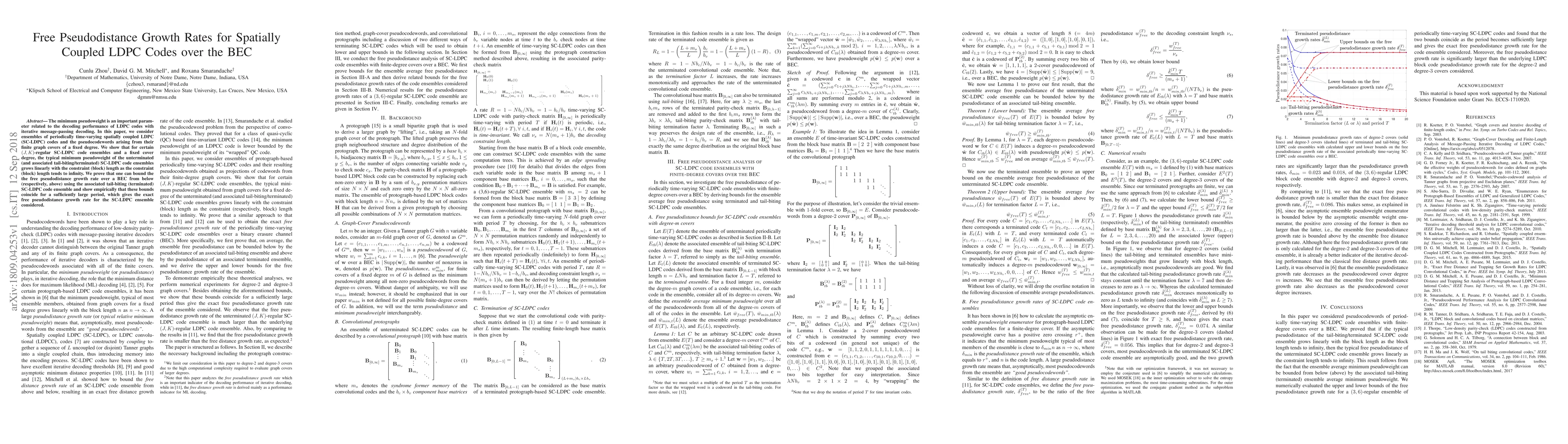 This paper examines the pseudoweight growth rates for spatially coupled LDPC codes over the BEC, demonstrating that the typical minimum pseudoweight grows linearly with the block length for certain code ensembles. It establishes bounds for the free pseudodistance growth rate using tail-biting and terminated ensembles, showing they coincide for large periods, thus determining the exact growth rate.