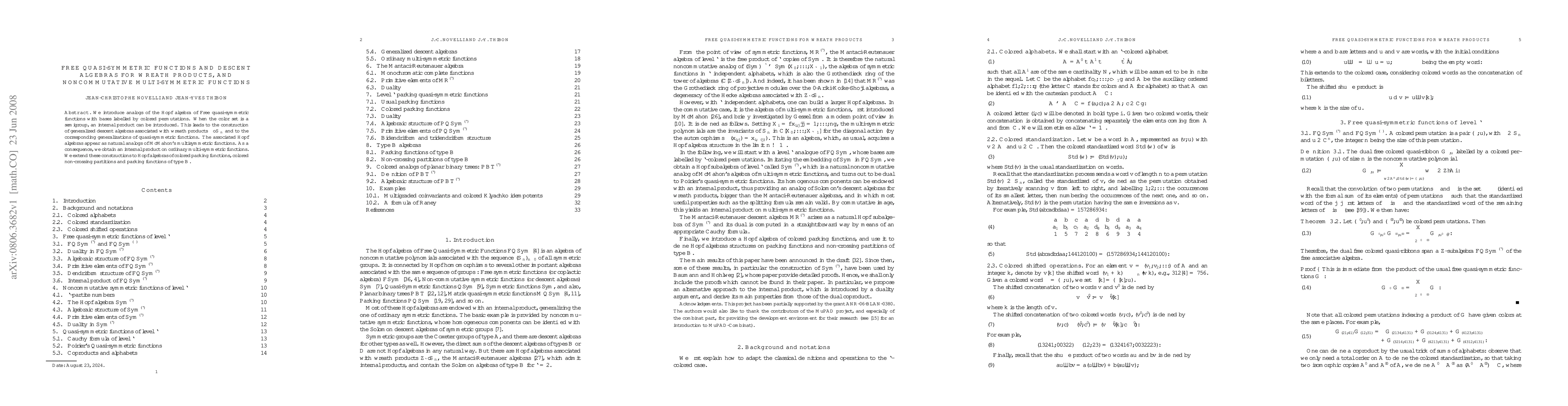 This paper introduces Hopf algebras analogous to Free quasi-symmetric functions based on colored permutations and constructs generalized descent algebras for wreath products. It extends these concepts to noncommutative multi-symmetric functions and various related Hopf algebras.