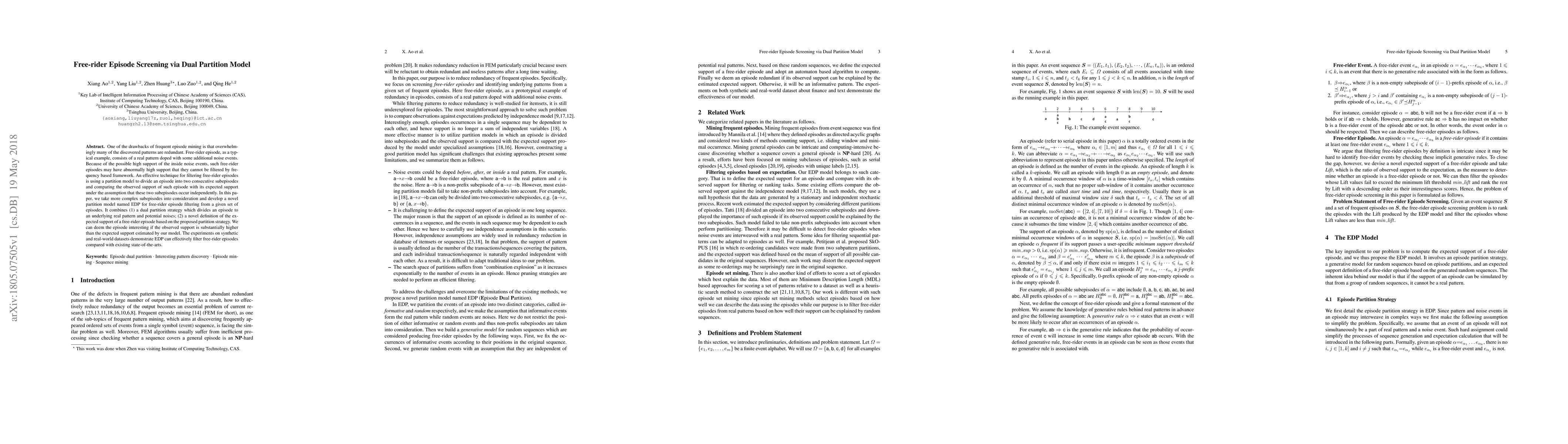 A new partition model called EDP is proposed to filter out free-rider episodes in episode mining, which can have abnormally high support due to noise events, and it demonstrates effective results on synthetic and real-world datasets.