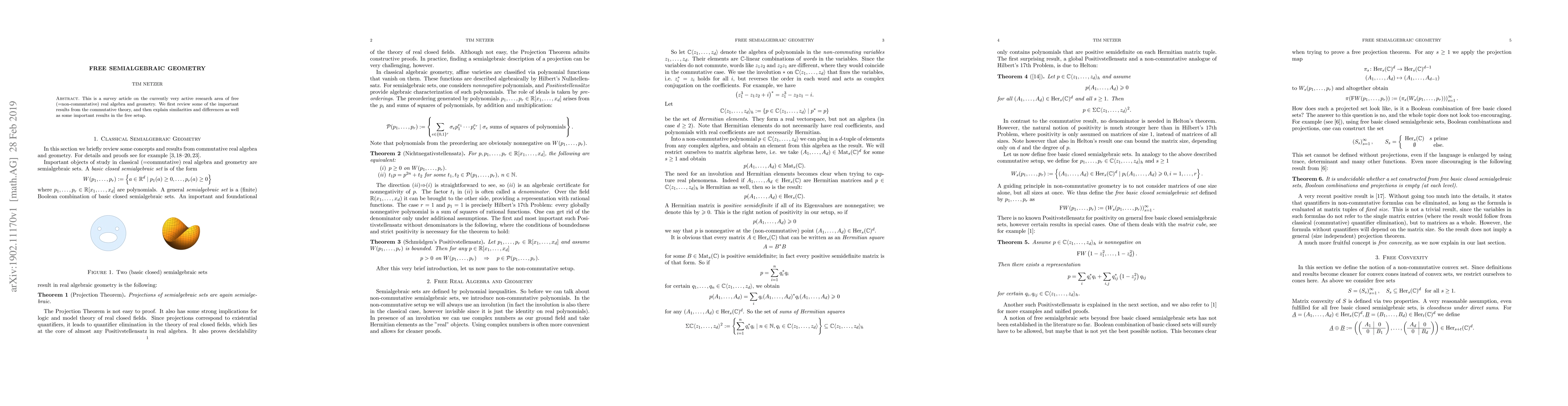 This is a survey article on the currently very active research area of free (=non-commutative) real algebra and geometry. We first review some of the important results from the commutative theory, and then explain similarities and differences as well as some important results in the free setup.