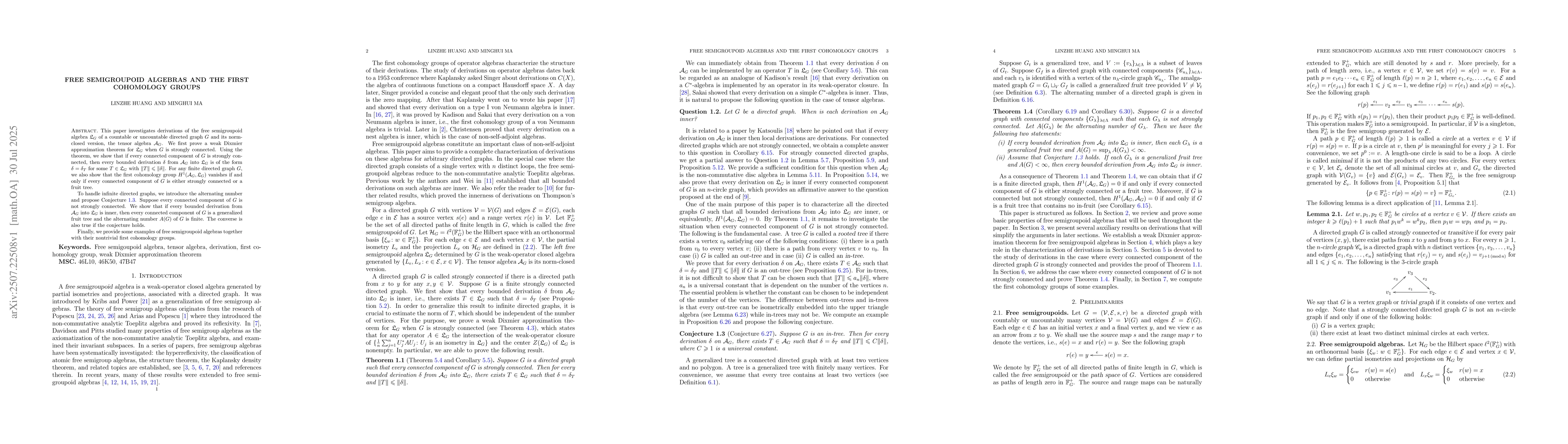 The paper establishes a weak Dixmier approximation theorem for free semigroupoid algebras and characterizes the inner derivations of tensor algebras based on the connectivity and structure of underlying directed graphs.